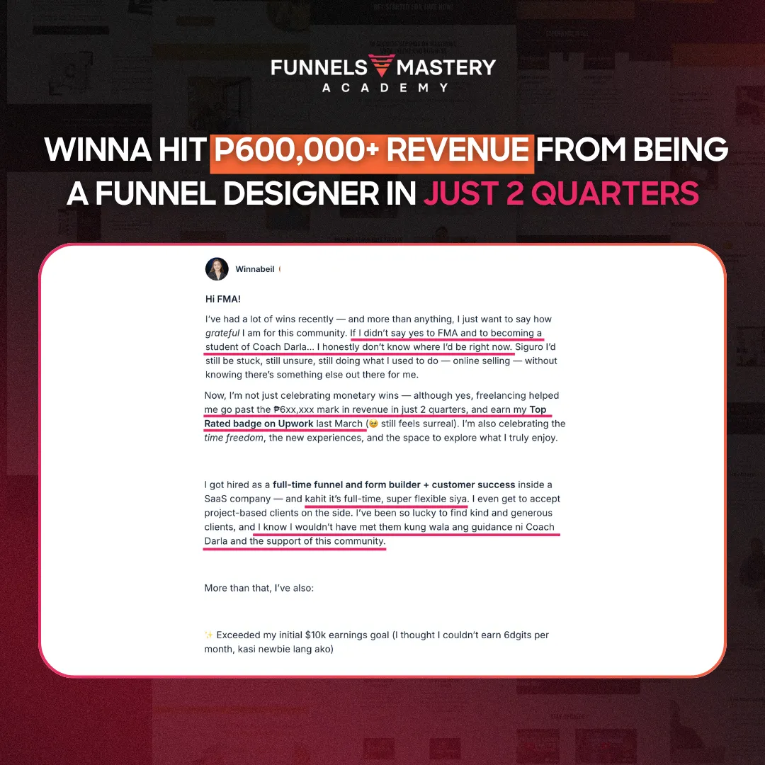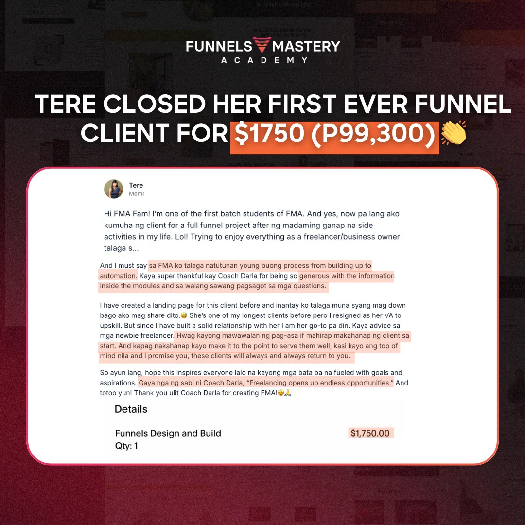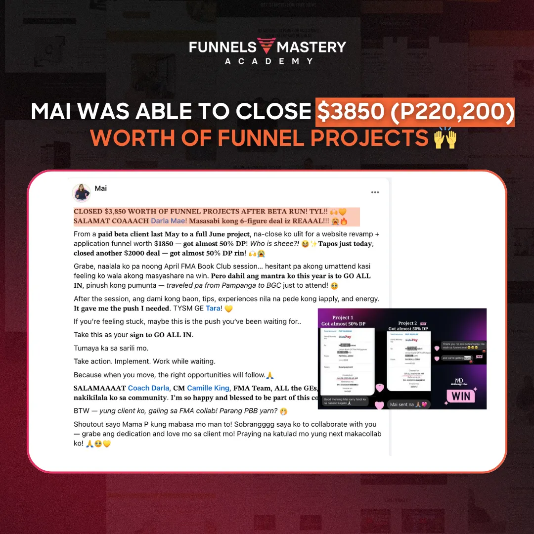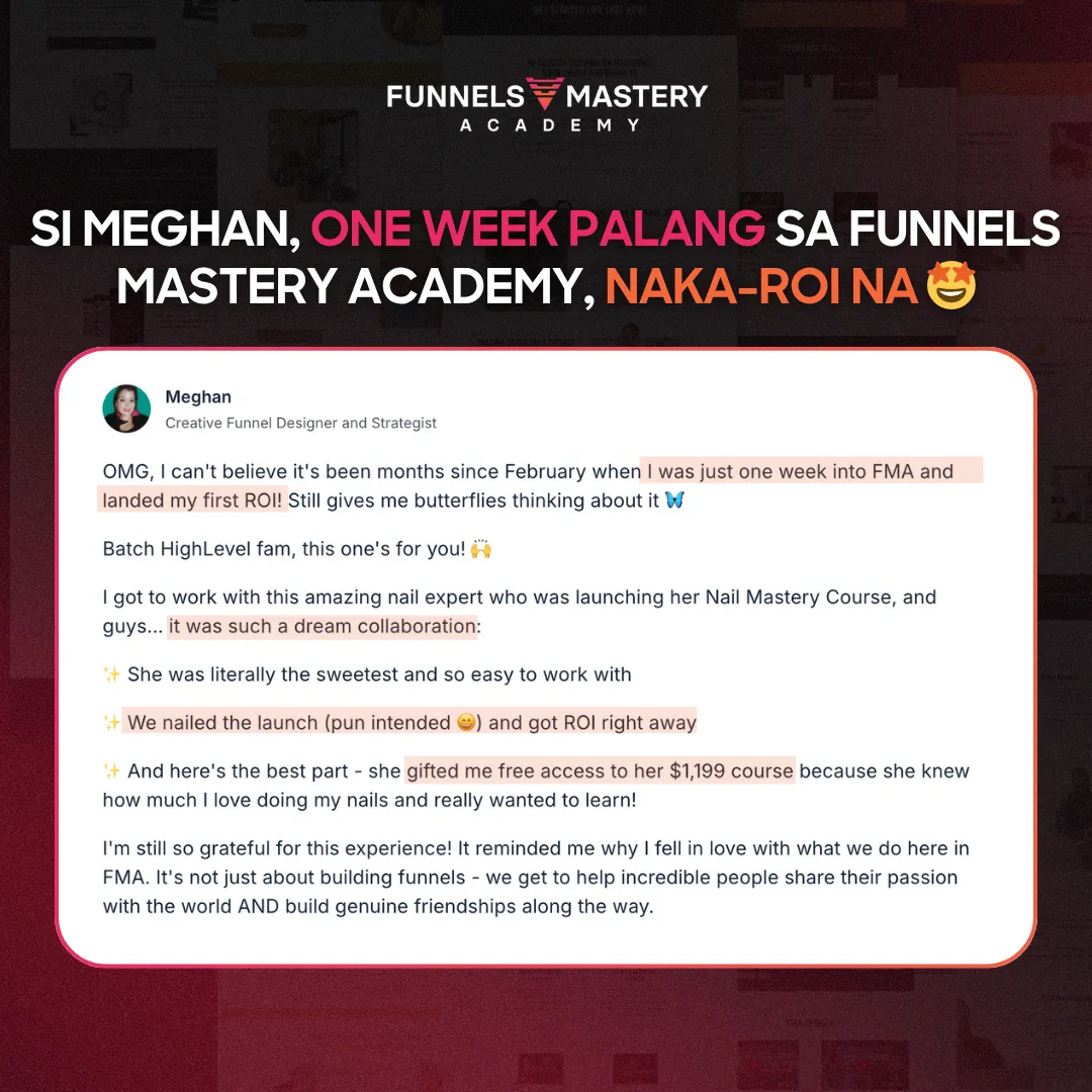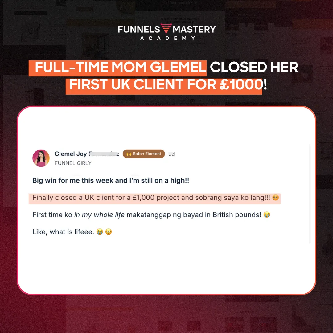 What happens when people take action? They post their wins. There are real posts, messages, and screenshots from students inside our Funnels Mastery Community.