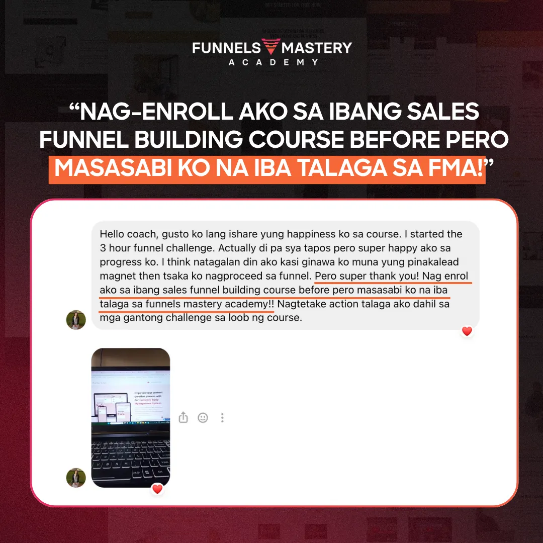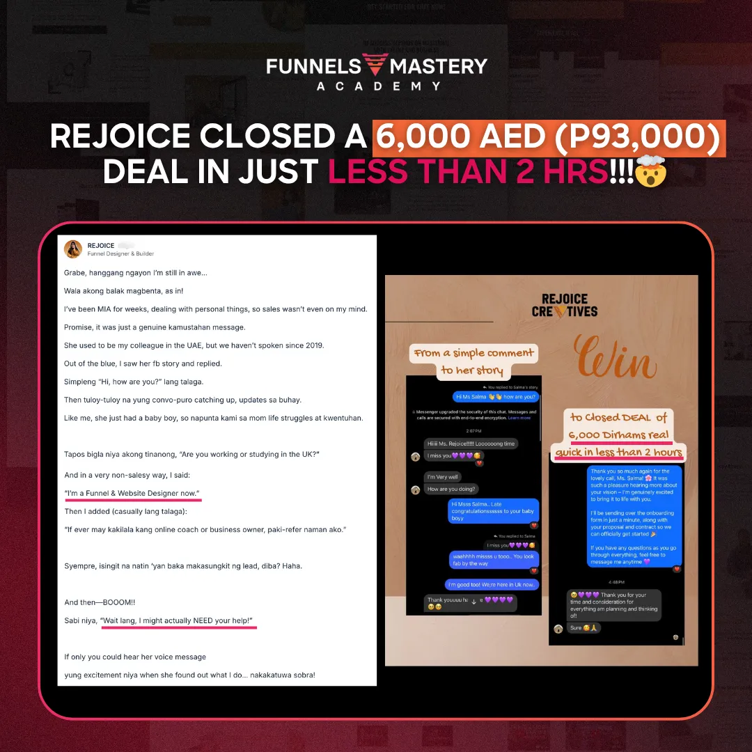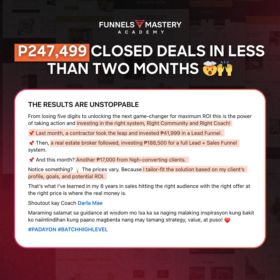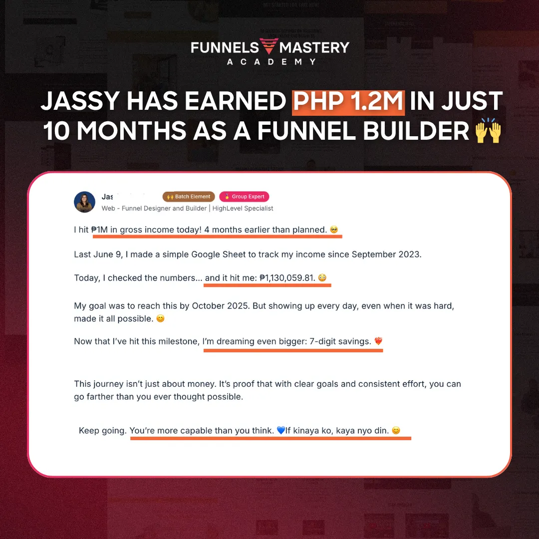What happens when people take action? They post their wins. There are real posts, messages, and screenshots from students inside our Funnels Mastery Community.