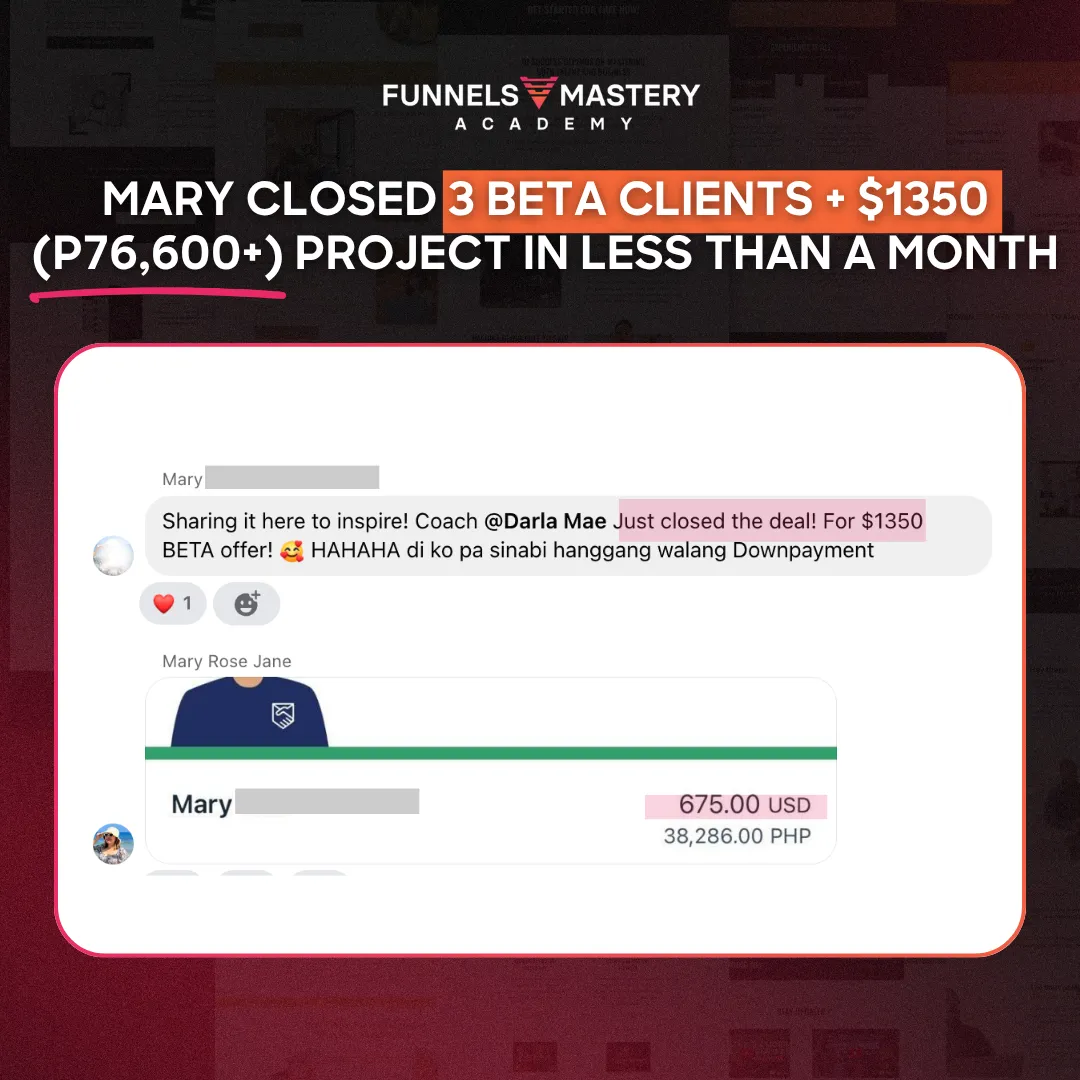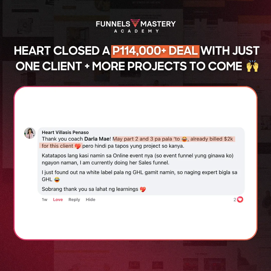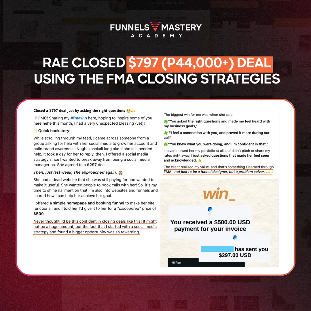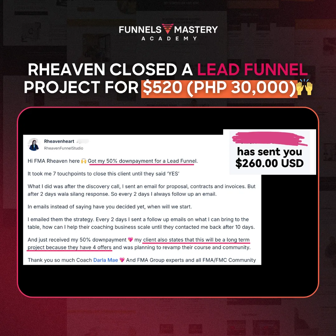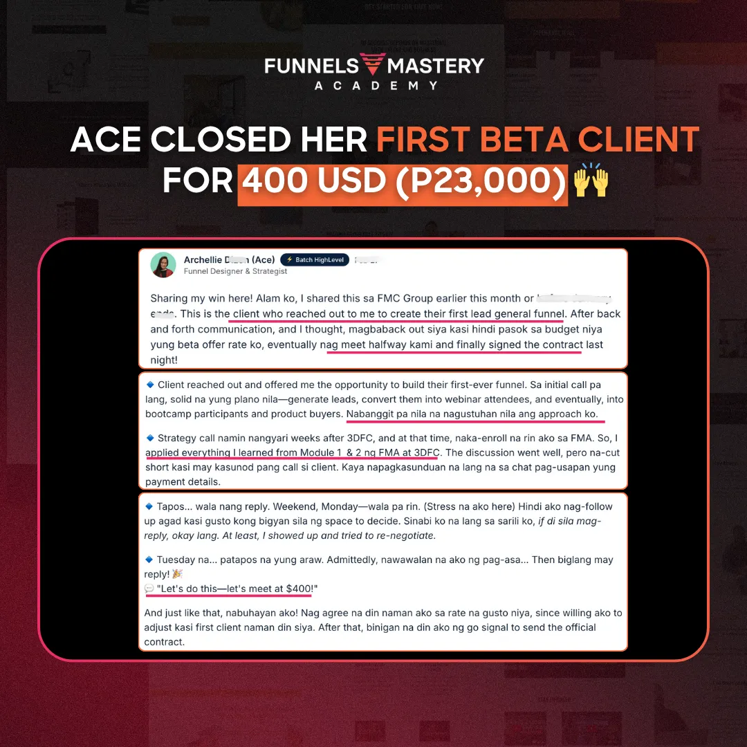 What happens when people take action? They post their wins. There are real posts, messages, and screenshots from students inside our Funnels Mastery Community.