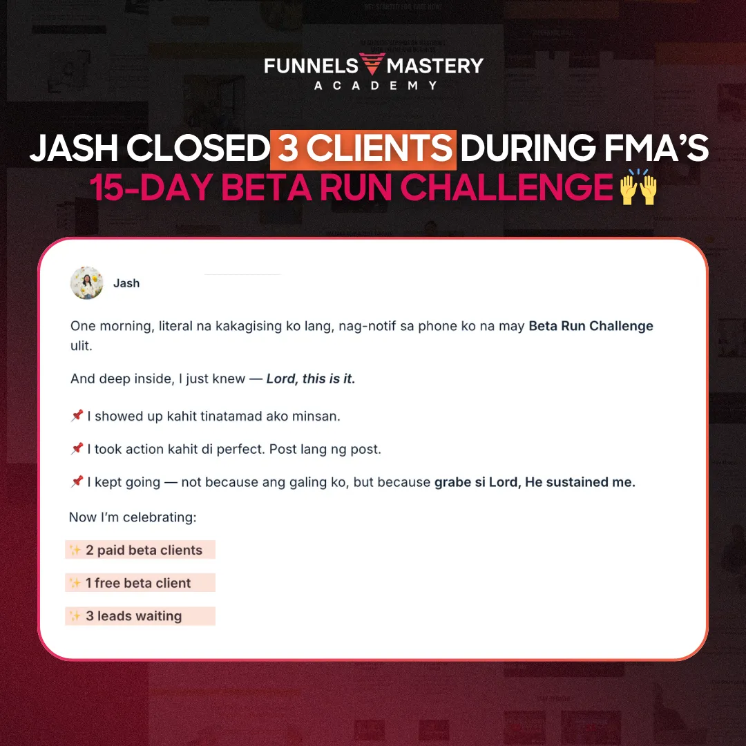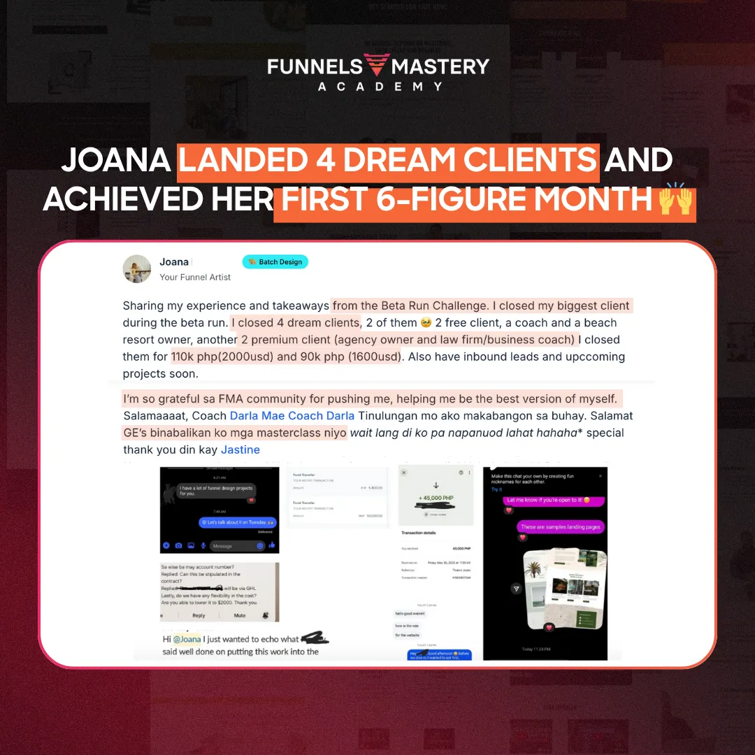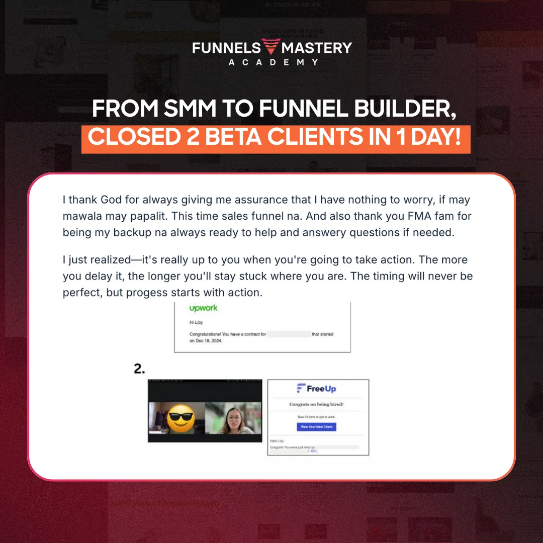 They made it happen — and so can you. Our FMA students didn’t just dream about building a better life… they rolled up their sleeves, learned the skills, and built funnels that now bring them high-paying clients and real freedom.