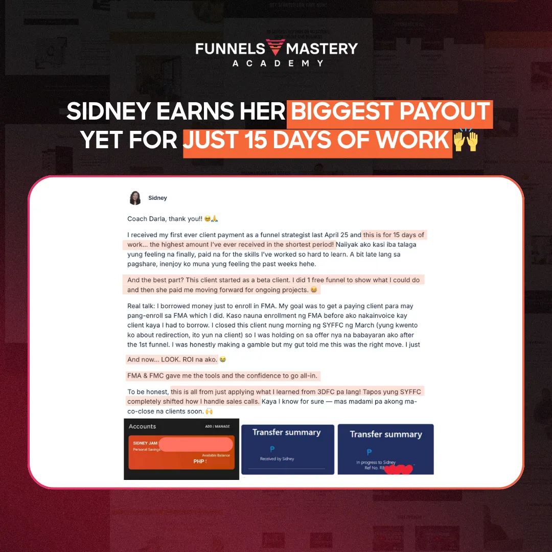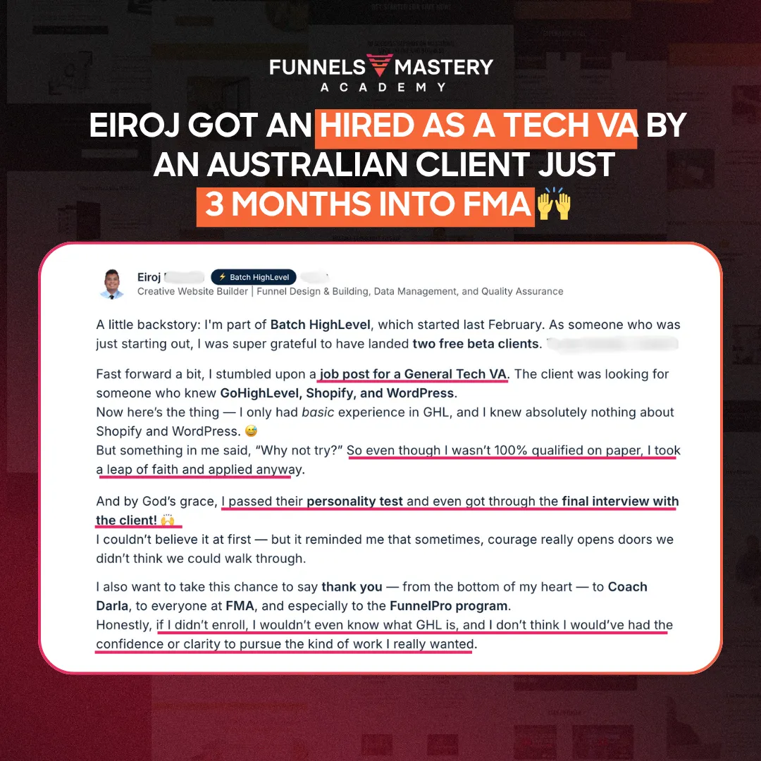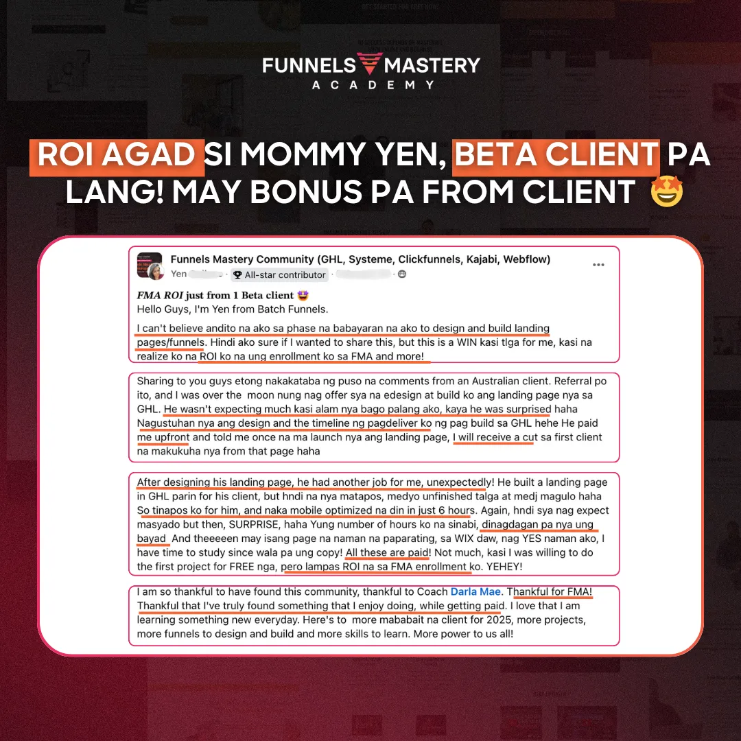 They made it happen — and so can you. Our FMA students didn’t just dream about building a better life… they rolled up their sleeves, learned the skills, and built funnels that now bring them high-paying clients and real freedom.